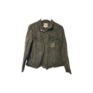 Vintage America Blues Camo Jean Jacket Women L Green Embroidered