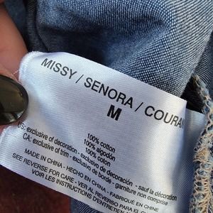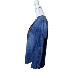 Vintage America Blues Floral Embroidered Denim Button Front Shirt Medium