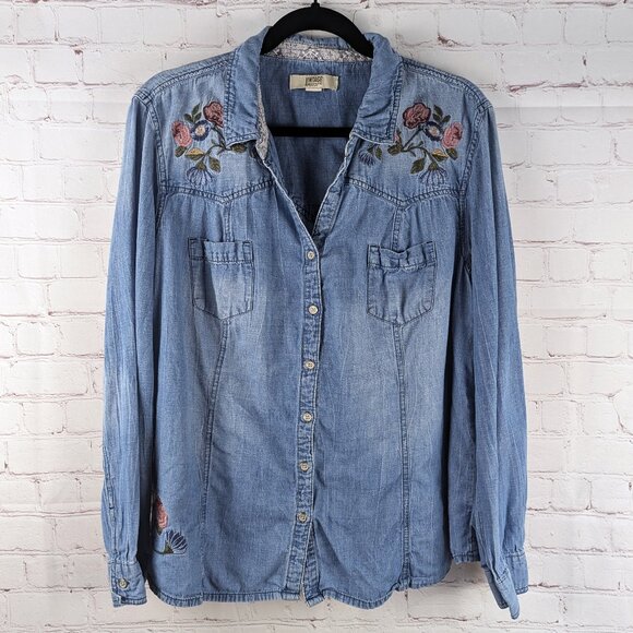 Vintage America Blues Long Sleeve Floral Embroidered Top XXL/2X