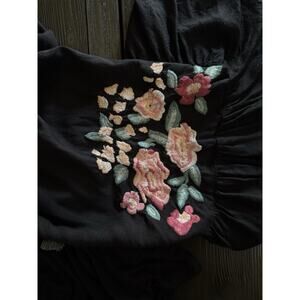 Vintage America Blues Peasant Black Embroidered Boho Folk Festival Floral Top L