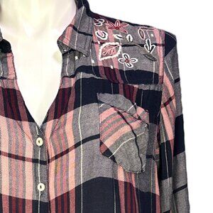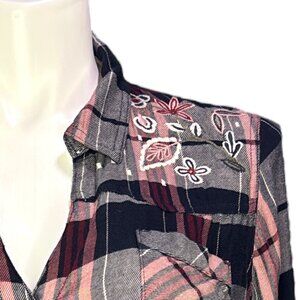 Vintage America Blues Women's Size Extra Large Plaid Button Front Shirt Embroidered Western Style