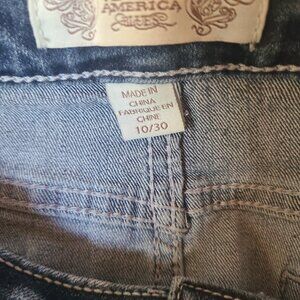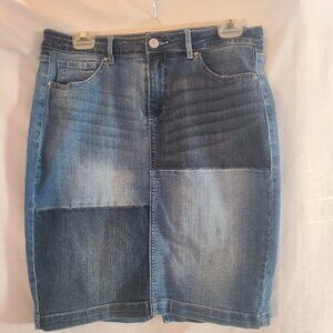 Vintage America Blues Women Patchwork Blue Denim Skirt Sz 10/30 Pencil Skirt