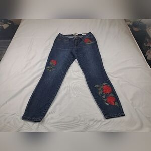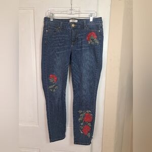 Vintage America Boho Skinny Ankle Denim Jeans Embroidered Flower Size 8/29