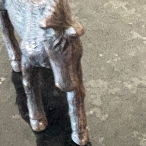 This figurine is a collectible piece crafted by Rawcliffe, an American metalworking company founded in Rhode Island in 1903. Rawcliffe started producing figurines under its own name in 1974. The figurine features a beautifully detailed horse design and is made of high-quality pewter. It's a vintage piece, likely from the 1980s.