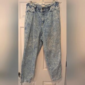 Vintage America Light Boyfriend Jeans Blue Acid Wash Paperbag Boho Sz 18 Grunge