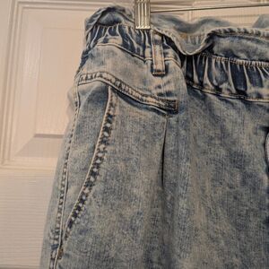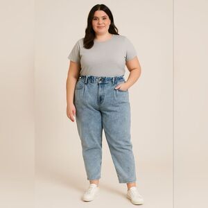 Stay on-trend with these stylish high-rise, acid wash jeans from Vintage America. Featuring a flattering paperbag waistband, tapered leg, and relaxed fit, these jeans are perfect for casual everyday wear. Classic 80s/90s throwback vibe with modern comfort. Button and zip closure, side pockets, and belt loops included.