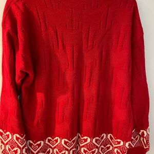 Embrace warmth and style with this charming red heart pattern sweater. Perfect for cozy days and adding a touch of vintage happiness to your outfit