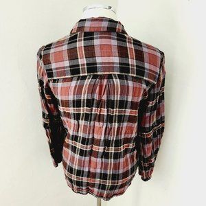 Vintage America Red Black Plaid Button Front Top Women's Small