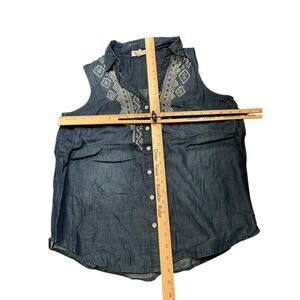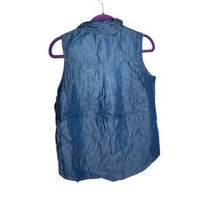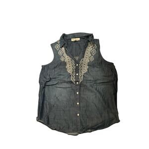 Vintage America Sleeveless Top Button-Up Embroidered Chambray Blue Size M NWT