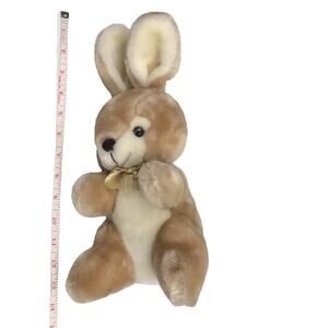Vintage America Wego Bunny Rabbit Plush 13'' 1982 Tan White w/ Gold Bow Easter Made in Korea