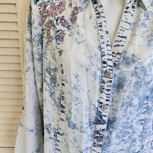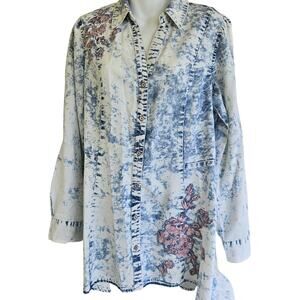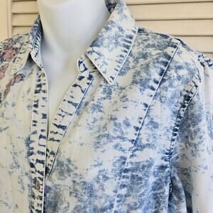 Vintage America Women's Size L Button Up Roll Tab Sleeve Tunic Western