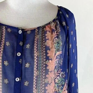 Vintage America womens top size small multicolored floral button down Hi-Lo boho flowy peasant career