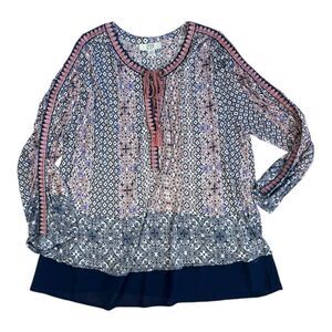 Vintage America Relaxed Blue and White 3/4 Sleeve Blouse Sz 1X
