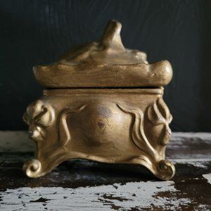 Vintage American Art Nouveau Gilt Metal Jewel Casket/ Jewelry Box by Benedict