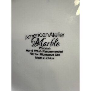 Enhance your dining experience with these elegant vintage American Atelier salad plates. Featuring a sophisticated marble design, these 7.5-inch porcelain plates are perfect for any occasion. Comes in a set of two.