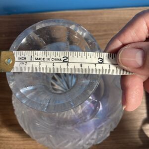 This vintage cut glass crystal decanter is a stunning piece of American Brilliant Period drinkware. Standing at 7.75 inches tall and weighing 2 pounds and 13.5 ounces, the clear crystal material and decorative features make it a sophisticated addition to any bar or table setting. There is cloudiness in the decanter. It has NO CHIPS OR CRACKS.
