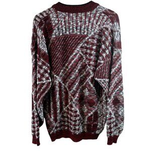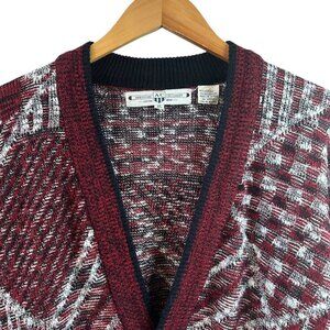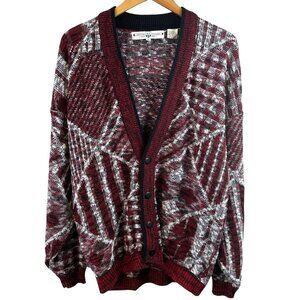 Vintage American Crusader Maroon Abstract Knit Button Cardigan Men’s XL
