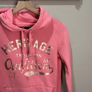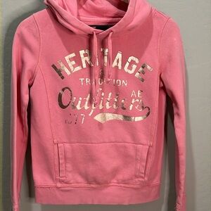 American eagle hoodie sweatshirt. Size xs. Vintage look. See pics for measurements. The fabric is vintage slight pulled look. Very cute. It has one bleach spot on the top of the right arm. See in pics.