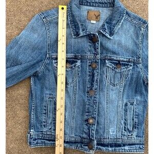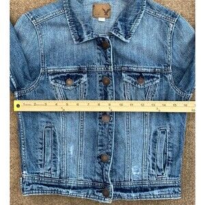 Vintage American Eagle Jacket Womens S Petite Denim Trucker Cropped Button Up