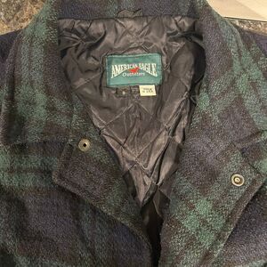 Vintage American Eagle Men’s Plaid Blue Green Barn Jacket Coat Small Wool
