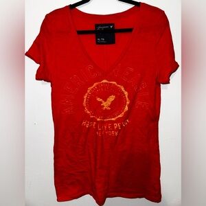 Vintage American Eagle Outfitters Red Graphic V-Neck Tee
