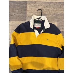Vintage American Eagle Outfitters Rugby Shirt XL – Navy/Gold Striped Long Sleeve
