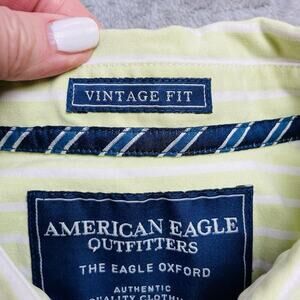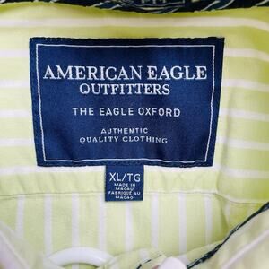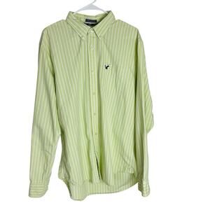 Vintage American Eagle Oxford Shirt Mens XL Green Stripe Button Down Long Sleeve