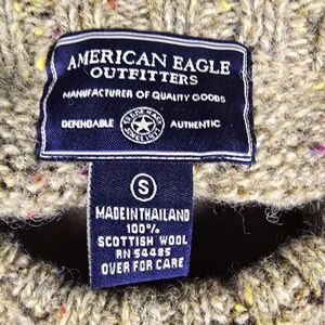 Vintage American Eagle Sweater Mens Small Brown Scottish Wool Chunky Knit 90s Heavy