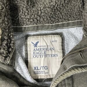 The Vintage American Eagle Sweatshirt in men's XL size is a green, hooded pullover perfect for the winter, fall, and spring seasons. Featuring a solid pattern and long sleeves, this sweatshirt is machine washable and designed for a regular fit. With the iconic American Eagle Outfitters brand, this piece of activewear embodies a nostalgic and gorpcore style that is both comfortable and trendy.