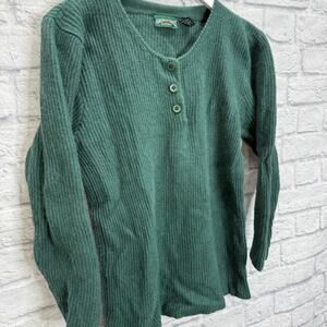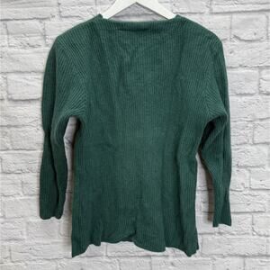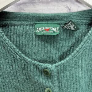 Vintage American Eagle Womens Wool Sweater Size M Green 3/4 Sleeve Ribbed Y2K