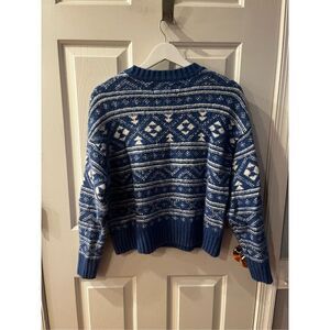 Vintage American Eagle Blue & White Print Acrylic Crew Neck Sweater sz S