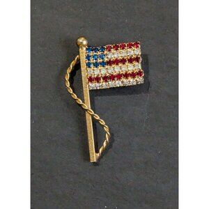 Vintage American Flag Rhinestone Brooch USA Patriotic Pin Red Blue 4th of July