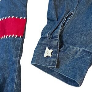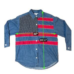 Vintage American Flag Stars Stripes Denim Shirt Red White Blue Large USA July 4