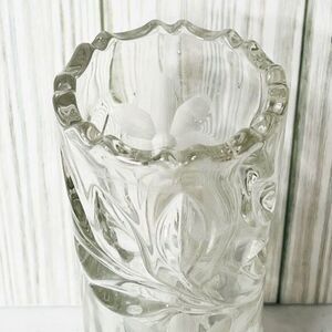 Enhance your home decor with this exquisite Vintage Glass Etched Clear Vase, featuring floral etchings and subtle ribbing, exuding timeless elegance. The ruffled top edge adds to its beauty, while the thick glass construction ensures durability and stability. In great pre-owned condition, minor hard water rings, as depicted in the images, yet remains free from chips or cracks. Elevate your space with this stunning piece, perfect for showcasing your favorite blooms with style and grace.