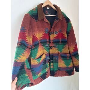 * Tags: vintage, Made in USA, southwestern, Aztec, jacket, toggle coat, wool blend coat, American Jac, outerwear
