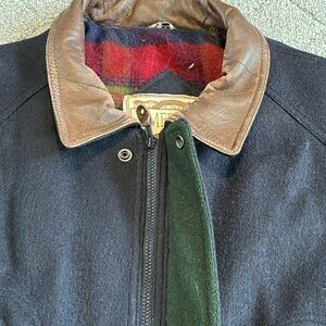 Vintage American Outerwear Bomber Wool Jacket Mens XL Blue Lined Full Zip Snap Leather Collar Lined