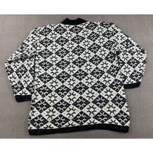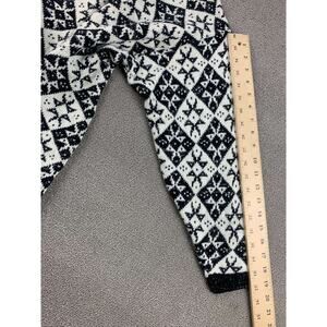 Vintage American Pride Sweater Women M Black Snowflake Pattern Metallic Silver