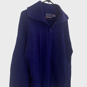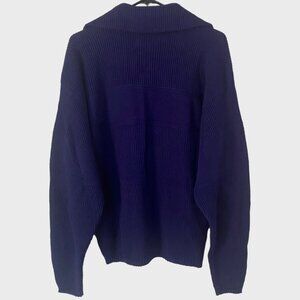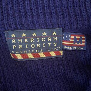 Vintage American Priority Full-Zip Ribbed-Knit Sweater Navy Blue Men's Medium