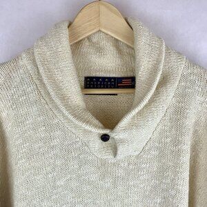 Vintage American Priority Mens Sweater Fisherman Shawl Collar Knit XL Ivory