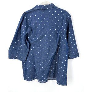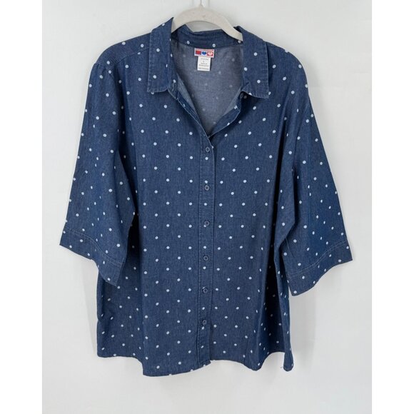 Vintage American Sweatheart Womens Button Up Shirt Polka Dot Size Large Blue