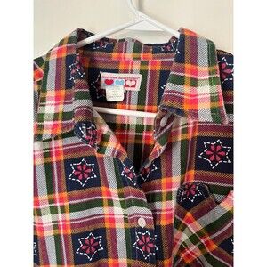 Size XL button down. 70% cotton and 30% polyester. Very cute pattern. Vintage