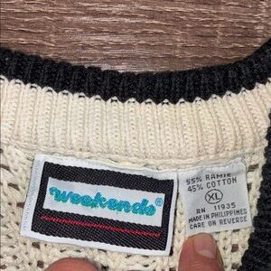 Vintage American Weekends Classic Pullover Sweater Men's XLarge Cream & Black Knitted V-Neck heavy blend
