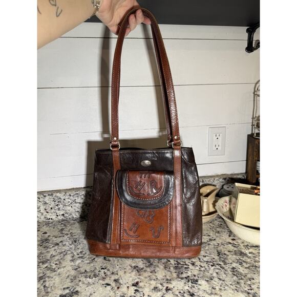 Vintage American West, Tooled By Hand, Leather Shoulder Bag, Branding Symbols