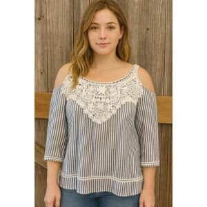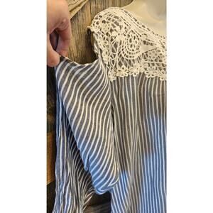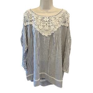 Vintage American chambray cold shoulder lace yolk 3X plus blouse relaxed EUC