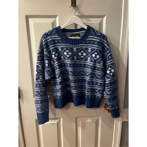 Vintage American Eagle Blue & White Print Acrylic Crew Neck Sweater sz S