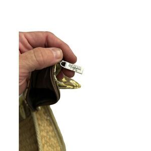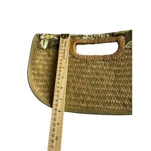 This vintage Americana clutch combines woven straw with a floral design, offering a stylish accessory. Comes with a matching coin purse.