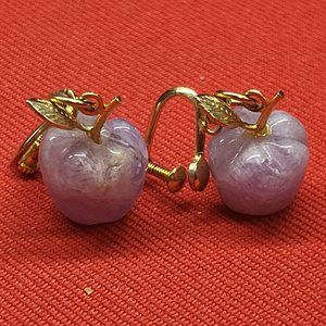 Vintage Amethyst Apple Purple Gemstone Earrings Gold Tone Adjustable Screw Earr