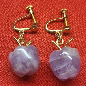Vintage Amethyst Apple Purple Gemstone Earrings Gold Tone Adjustable Screw Earring Clips