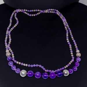 Vintage Amethyst Bead Beaded Sterling Silver Handknotted Necklace from 1940’s