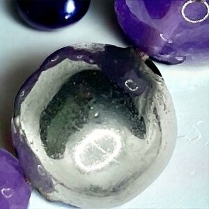 34” long with widest bead being 8”. Sterling silver beads need some polishing. Genuine amethyst. From the 1940’s or earlier.